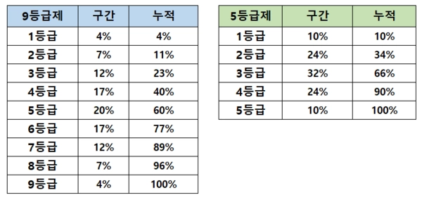 이제는 9등급제가 아니라 5등급제로!