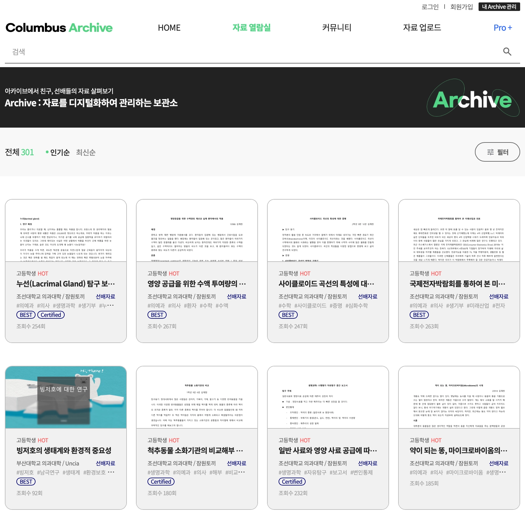 (1) 아카이브에 자료를 업로드한 경우!