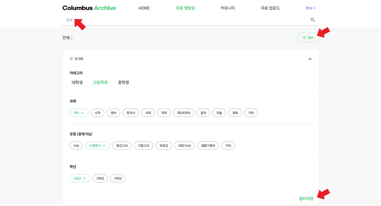 필터를 적용하면 원하는 자료를 더 빠르게 찾아볼 수 있습니다!