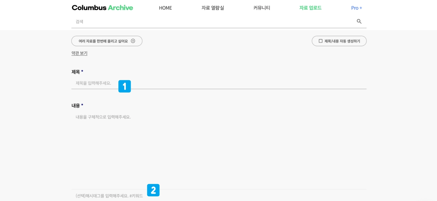 자료 제목/내용 자동 생성 기능으로 더 빠르고 편리하게 자료를 업로드해보세요.